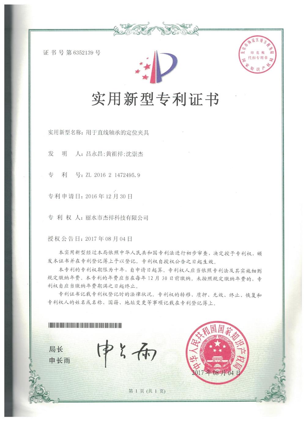 用于直線軸承的定位夾具