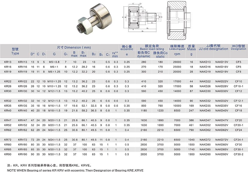 產(chǎn)品名稱(chēng):KR螺栓型滾輪滾針軸承